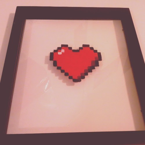 8-bit Heart painted on glass. What a terrible idea! I hate painting, and this wasn't the most fun project I've given myself. This was in my very first art show, Oh My Glob! at War'Hous Visual Studios in Houston on March 30th. Even though it was awful to paint, I'm so happy that it actually sold at the show!! 3-13-13.